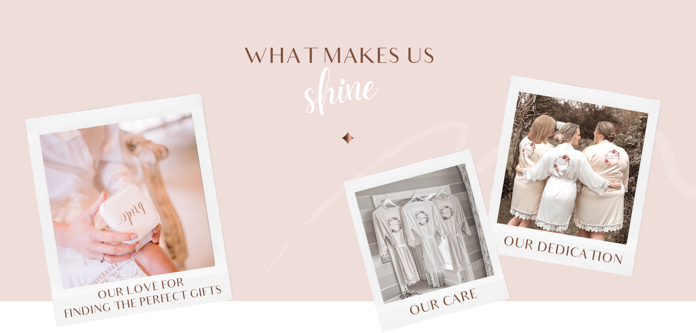 Our small team are on hand to help guide you through your bespoke experience with us. From help choosing the perfect design for your day, to giving you quick and reliable customer service when needed. We strive on giving our customers a hassle free process from the moment you land on our website.